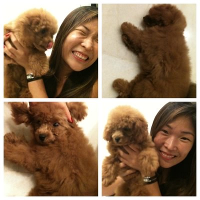 Christmas eve with Popcorn was oh so warm and fuzzy. :) Little baby was an excellent host for both my sister’s in-laws and furry friend Giggs (my sister’s dog). Popcorn radiated with excitement and affection to our guests and it was really endearing to see :) Glad Popsicle is fitting well into the clan ;) But some naughtiness was building up in the air as the night progressed. Popcorn, being the over-achieving hospitable host eagerly French kissed Giggs over and over, and over and over again. Yes, we all could see that she wasn’t going to quit anytime soon. Giggs, being the well behaved older boy displayed a cool demeanor, turning away, circling Popcorn as she hopped and sent her kisses flying his way. But I guessed eventually Giggs couldn’t bare the kisses no more and started playing more roughly with Popcorn. Woah, many times I thought that Giggs would unconsciously pounce on Popcorn too hard and break her puny bones O.O horrible thought. But nothing of that sort happened anyway. :D This was the second time Popcorn and Giggs met up. This round was better I would say, Popcorn didn’t pee. =D