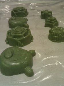 Poured into the Mold :D after mixing in soap base and lavender essential oil :)