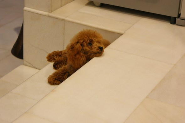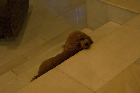Then Grandma tried to make me face my fear, but instead of taking on the challenge like a brave pup i think i am, i dashed through the forbidden sofa area and made a full circle back to my safe haven at the corner of the stairs. :D i got everyone laughing :P i was impressive wasn’t i Mommy? =x